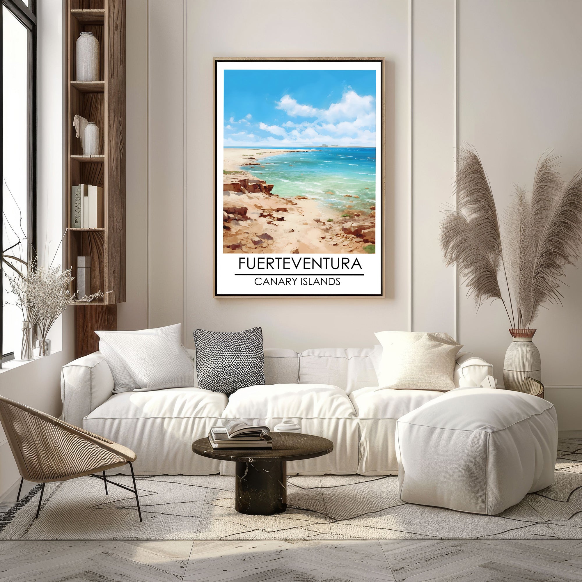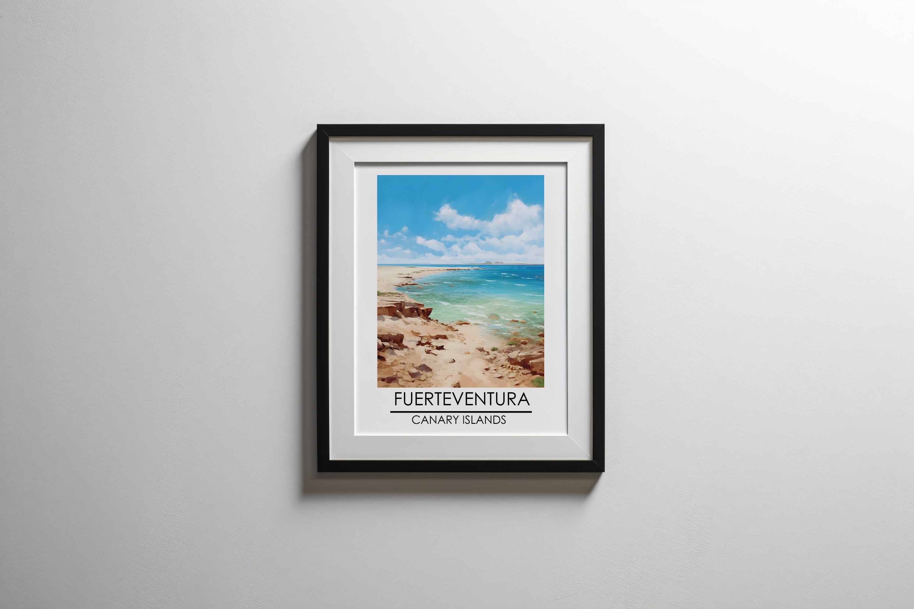 Step into the serene beauty of Fuerteventura, captured in this stunning coastal artwork. The pristine sandy beaches meet the sparkling turquoise waters, evoking a sense of peace and escape. The vibrant blue sky and gentle waves highlight the island’s natural charm, making it a haven for lovers of unspoiled landscapes. Perfect for those seeking to bring the essence of the Canary Islands into their home or office, this piece celebrates the tranquil allure of one of Europe’s most picturesque destinations.